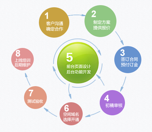網(wǎng)站建設(shè)流程概述:客戶溝通,確定合作意向→制定建設(shè)方案,提供報價→簽訂合同,預(yù)付定金→初稿審核→前臺頁面設(shè)計,后臺程序開發(fā)→空間及域名選擇、開通→測試驗收→上線培訓(xùn),后期維護(hù)